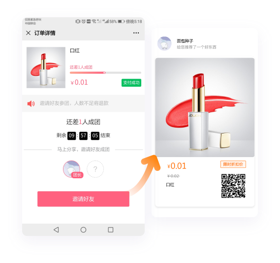 通过任务宝、转发宝等高 效裂变工具帮助您迅速涨粉